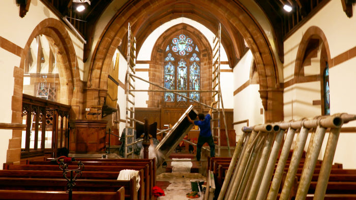 In just a few hours at the end of October a team of volunteers stripped the church of all its moveable furnishings. In the emptiness the cobwebs were all the more apparent!