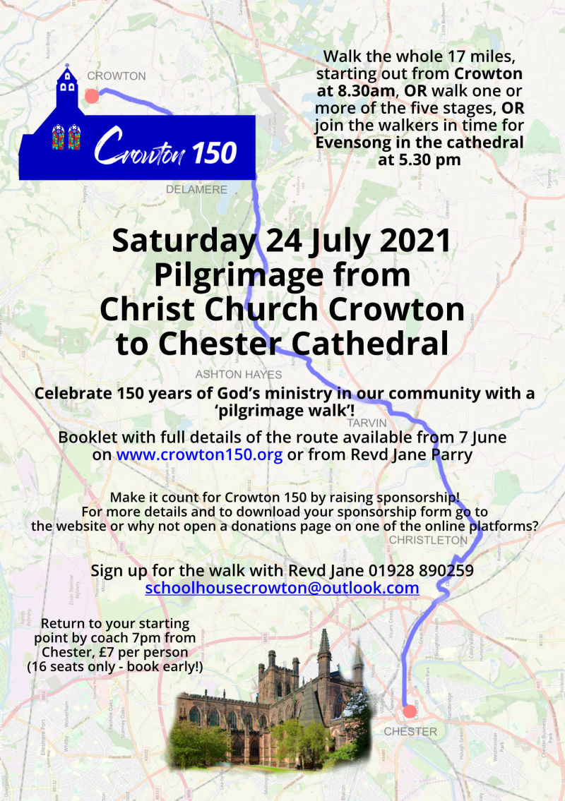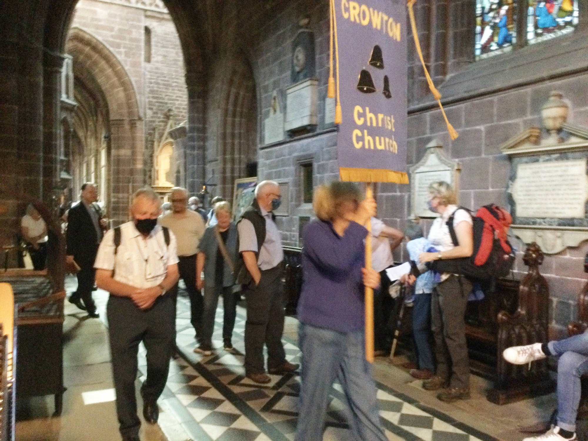 At 8.30 am on 24 July 2021 a band of intrepid pilgrims made the 17 mile trip from the church to Chester cathedral, culminating in a service at the cathedral