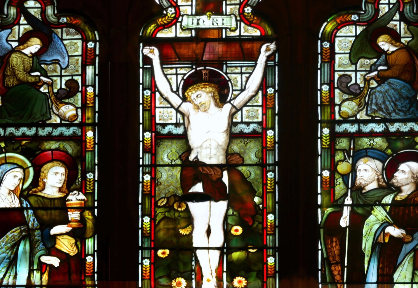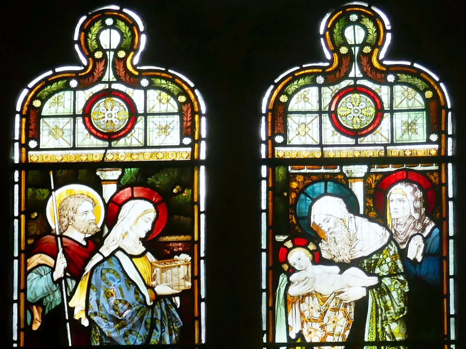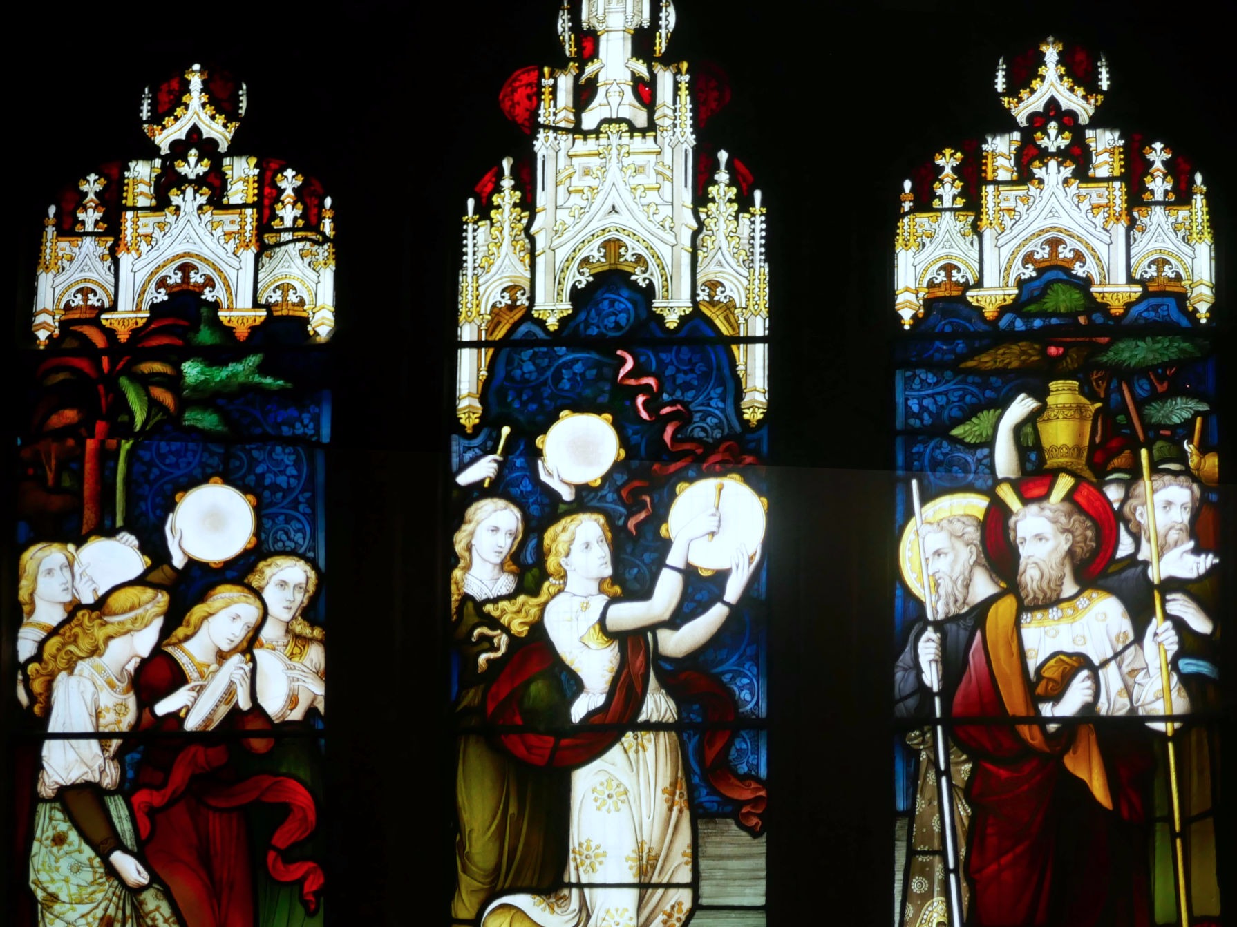 In a category apart from all the other windows is the unusual stained glass which graces the side chapel of the church.